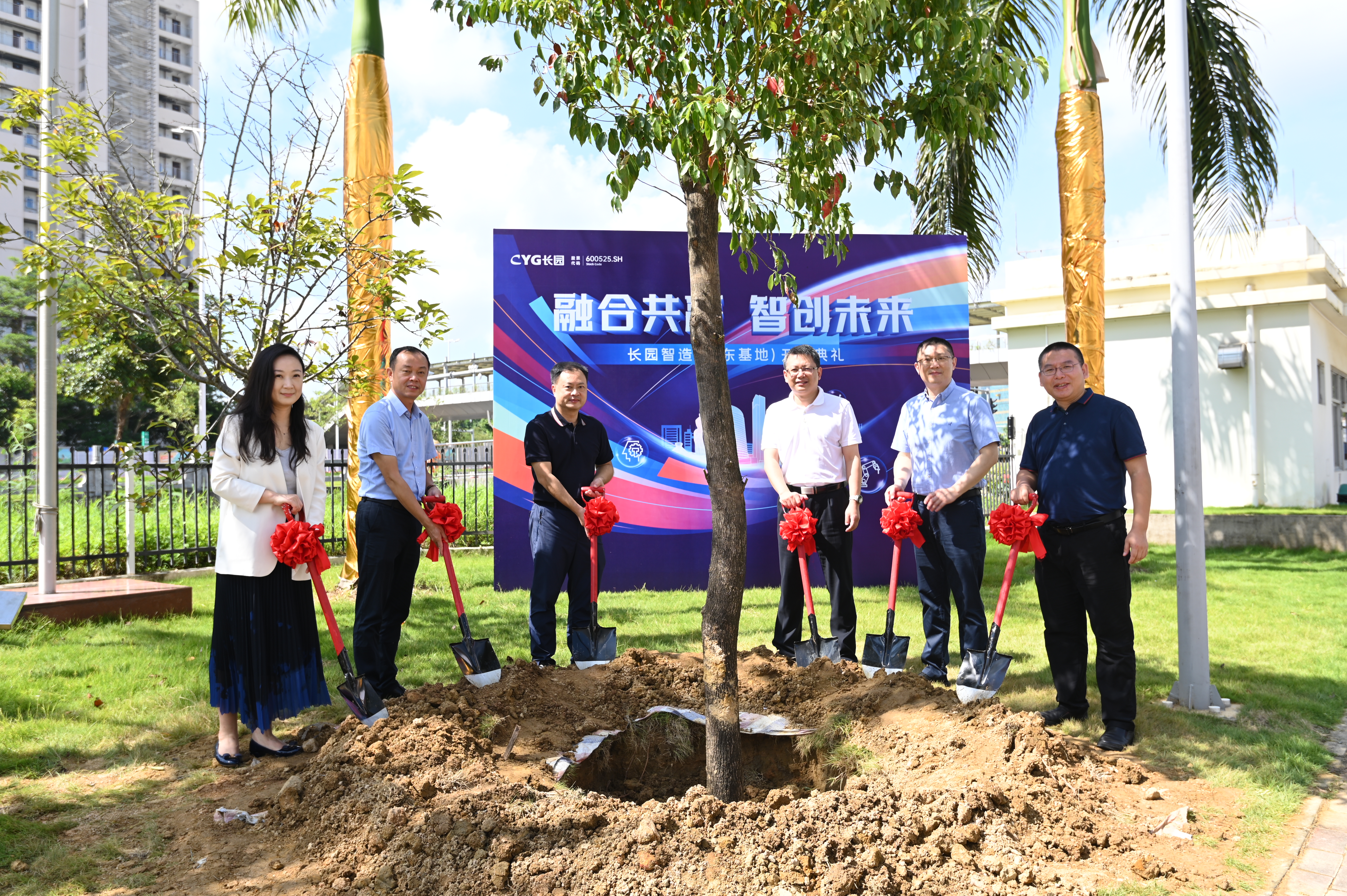 上午10点,珠海市高新区党工委委员、区管委会副主任薛飞,格力集团党委书记、董事长周乐伟,格力集团总裁助理、格信发展公司董事长程敏,米兰电竞科技集团董事长、总裁吴启权,米兰电竞科技集团董事长特别助理朱晓军,米兰电竞智能装备总经理熊胜辉共同为仪式进行剪彩并在基地种下一颗香樟树以作纪念,香樟树枝繁叶茂,四季常青,寓意着米兰电竞智造(广东基地)必将像香樟树一样生命力顽强旺盛、扎根高新区繁荣生长,成为高新区里的一棵参天大树。植树添绿共谱新篇,米兰电竞的发展迈出了又一关键的里程碑。